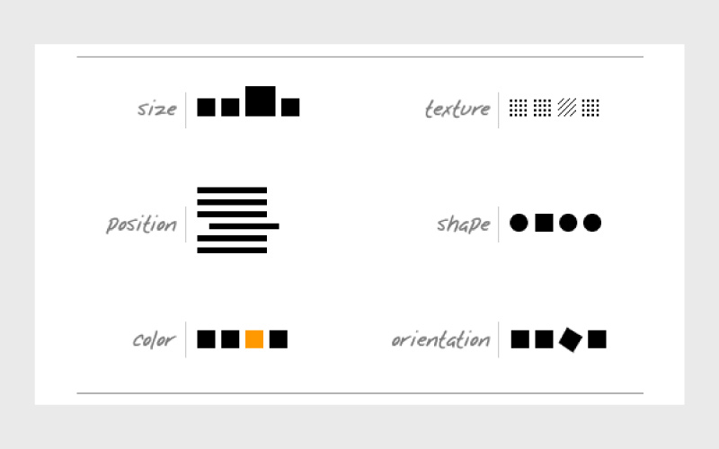 مطالعات نشان دادهاند که افراد %80 از آنچه که میبینند را بیاد میآورند، این یکی از دلایلی است که باعث میشود طراحی، چنین ابزار قدرتمندی باشد؛ اما توجه به طرح میتواند کوتاه باشد و گاهی اوقات بینندگان نیاز به کمی راهنمایی دارند تا جهت درست تمرکز بر روی آن را بیابند. در این مواقع، نشانههای بصری میتواند کمک کننده باشد. یک فلش کوچک یا برجسته کردن یک عنصر با قرار دادن آن درون یک دایره یا یک شکل دیگر میتواند توجه افراد را به آن عنصر جلب کند. بلوکهای متنی که ممکن است به صورت برجسته ظاهر شوند، نقاط دایرهای یا آیکونهایی که مفاهیم مورد بحث را مشخص میکنند نیز نمونههای دیگری از کاربرد نشانههای بصری هستند.