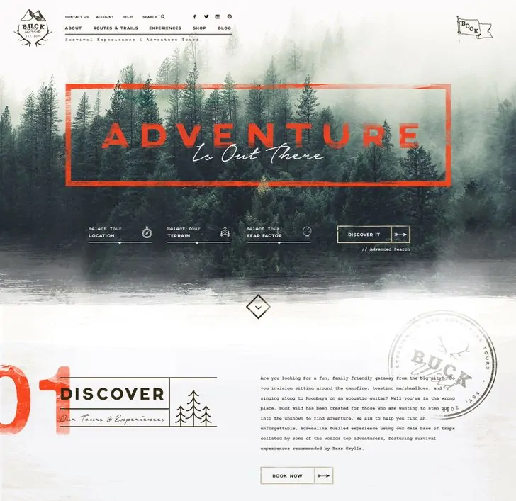 در طراحی وبسایت زیر، رنگ قرمز و نارنجی کاملاً اشباع شده در برابر رنگ سبز با اشباع پایین برای تصویر جنگل قرار گرفته است. این طرح، نه تنها یک طرح رنگ مکمل است (و به این دلیل، طرح چشمگیری است) بلکه از سطح مناسبی از اشباع برای چشمگیرتر شدن آن استفاده شده است.